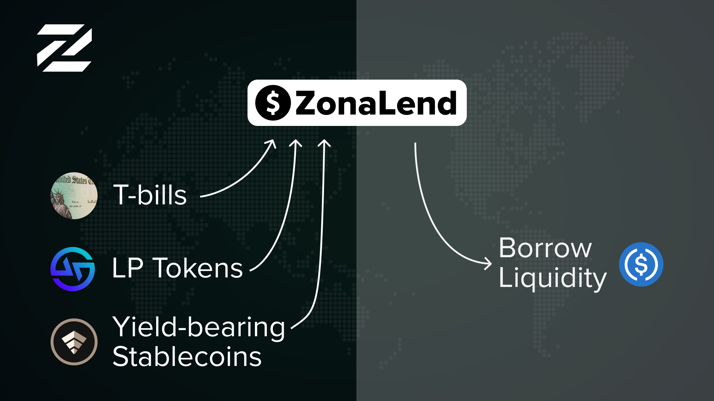 ZonaLend allows users to deposit and borrow in-house RWAs tokenized by Zona, third-party RWAs tokenized by other issuers, and crypto-native assets such as USDT, USDC, WETH, and others.